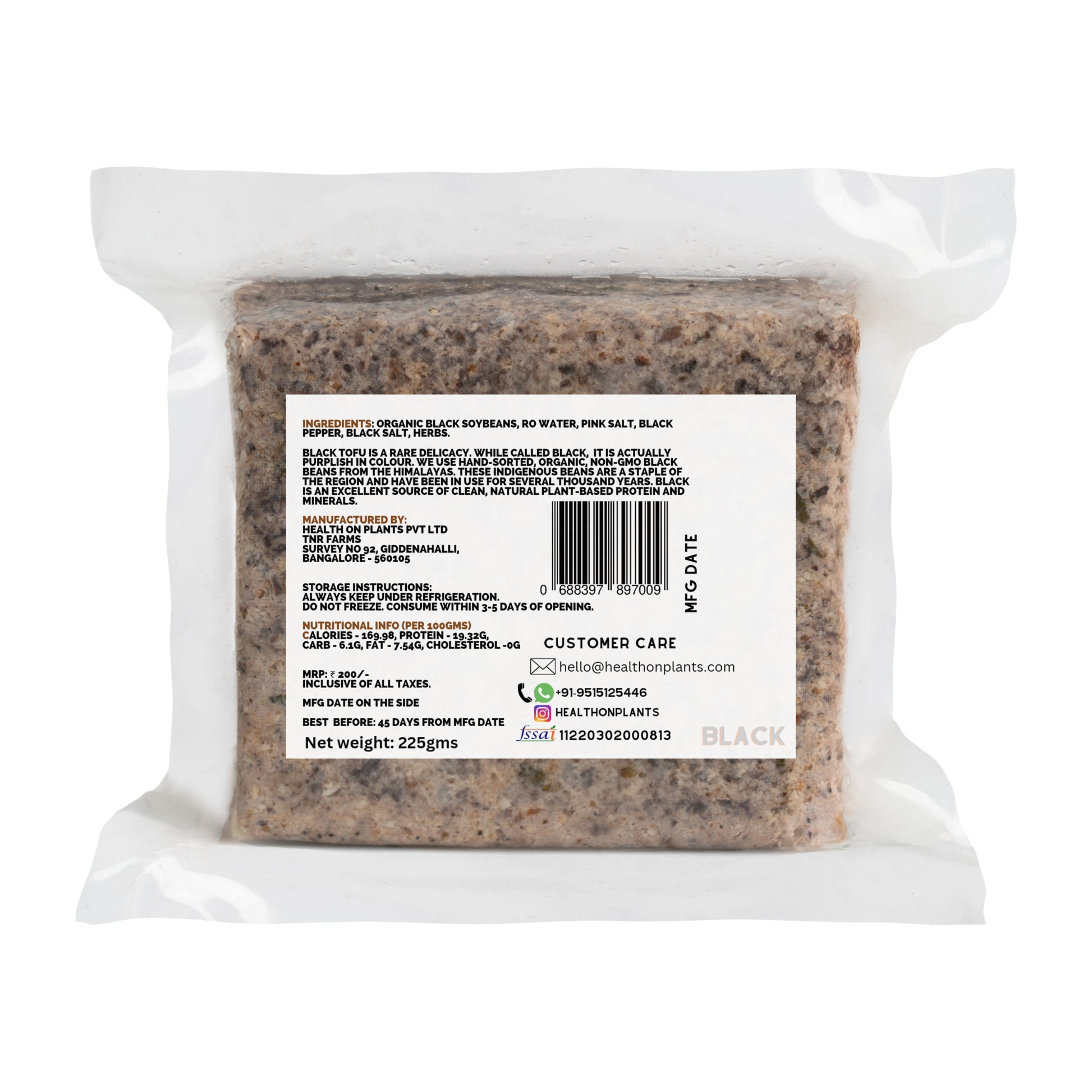 We optimized our processes to ensure no protein is lost in the manufacturing process. We were able to retain significant fiber as well. The resultant product is a unique all-natural, nutrient-dense tofu. While the beans are black, the tofu looks purplish in colour..