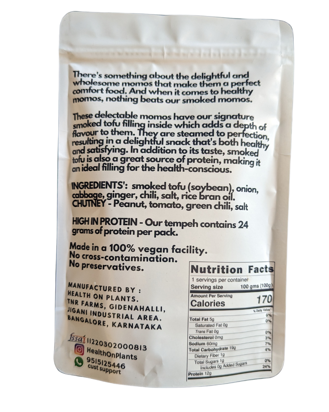 These delectable momos have our signature smoked tofu filling inside which adds a depth of flavour to them. They are steamed to perfection, resulting in a delightful snack that's both deeply satisfying. In addition to its taste, smoked tofu is also a great source of protein, making it an ideal filling for the health-conscious.